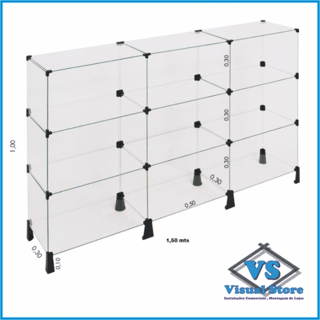 BALCÃO DE VIDRO TEMPERADO 1,50X1,00X0,30 COM PÉZINHOS FIXOS