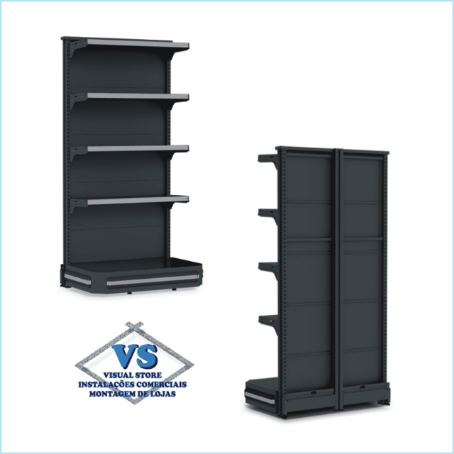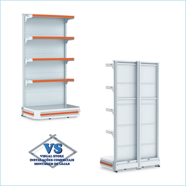 Utilizada no início e no final das fileiras de Gôndolas Centrais para tornar a loja mais atraente. Ideal para lojas de médio porte, como supermercados, petshops, home centers, agropecuárias, lojas de construção e outros.