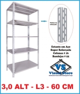 Estantes , Balcões em Aço. > Móveis de Aço VS. > **ESTANTE EM AÇO SUPER REFORÇADA COLUNA L3 INDUSTRIAL 3,0 MTS DE ALTURA X 92 X 60 5 BANDEJAS CHAPA 22