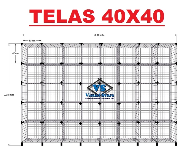 Balcões e Estantes aramados > Aramados com conectivos > ESTANTE EM TELA ARAMADA 3,20X2,10X40 C/ 40 NICHOS 40X40 BRANCA OU PRETA