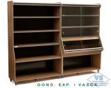 Móveis para Padarias e Lojas de bolos > Balcões de Atendimento secos > KIT VASCA DE PÃO MDF 1,20 MTS TODA FECHADA C/ PORTAS DE VIDROS + GÔNDOLA EXPOSITORA 1,24 MTS COR AMADEIRADO