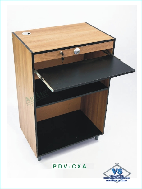 *BALCÃO CAIXA E CONSULTA COM SUPORTE DE TECLADO E GAVETA C/ PORTA NOTAS