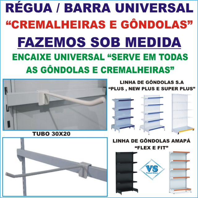 DIVERSOS VISUAL STORE > DIVERSOS VS > BARRA PARA GÔNDOLA E CREMALHEIRA ENCAIXE UNIVERSAL SOB MEDIDA BRANCA OU PRETA