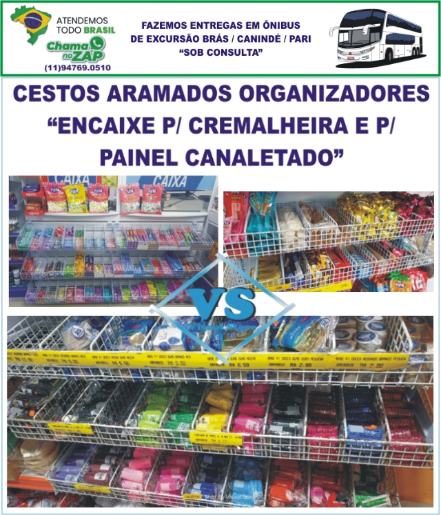 EXPOSITORES , CESTOS ARAMADOS , CESTOS ORGANIZADORES , GÔNDOLAS , CREMALHEIRAS E ACESSÓRIOS , GANCHOS , BANCAS DE OFERTAS , BALCÕES , VIDROS TEMPERADOS , CONECTIVOS , ARARAS