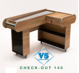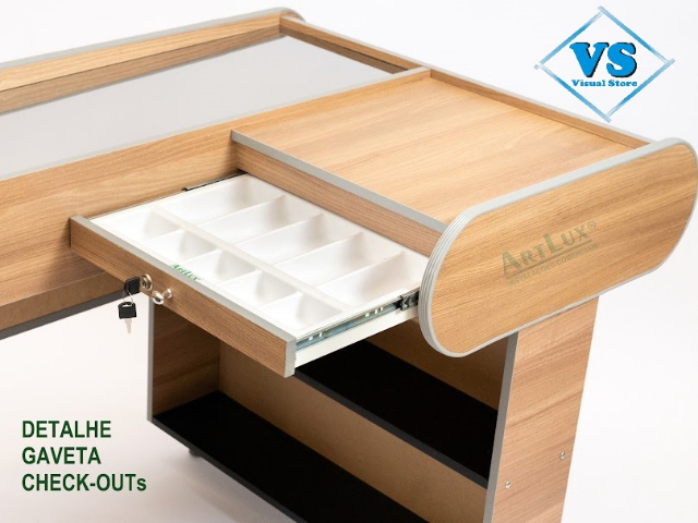 Nossos Checkouts possuem pista para passagem de compras inclinada , revestido de aço inox para facilitar o movimento de mercadorias . Além disso possuem gaveta com chaves , corrediça telescópia e porta notas e moedas inclusos.
